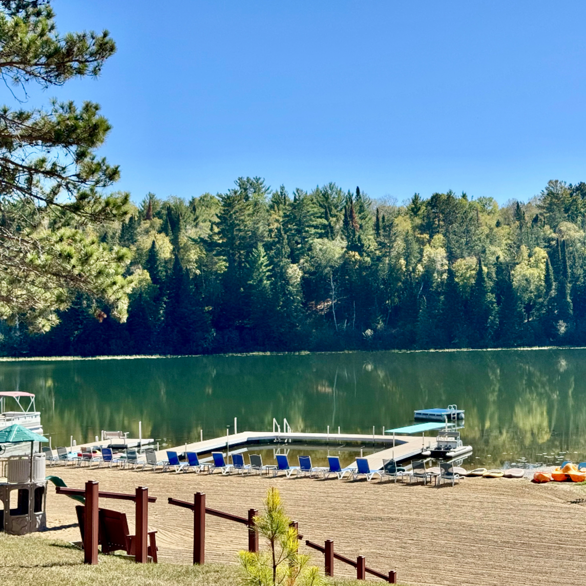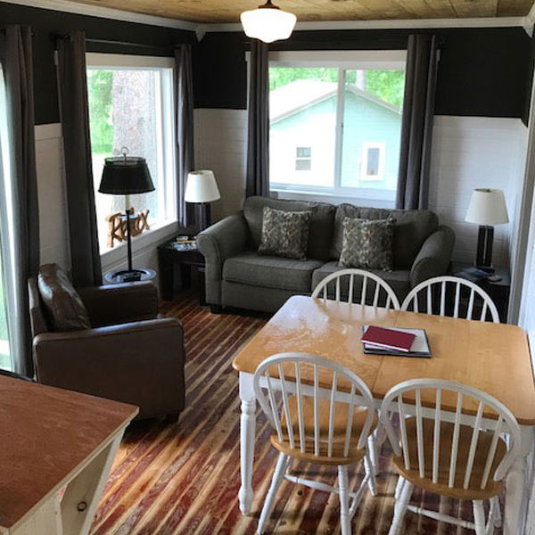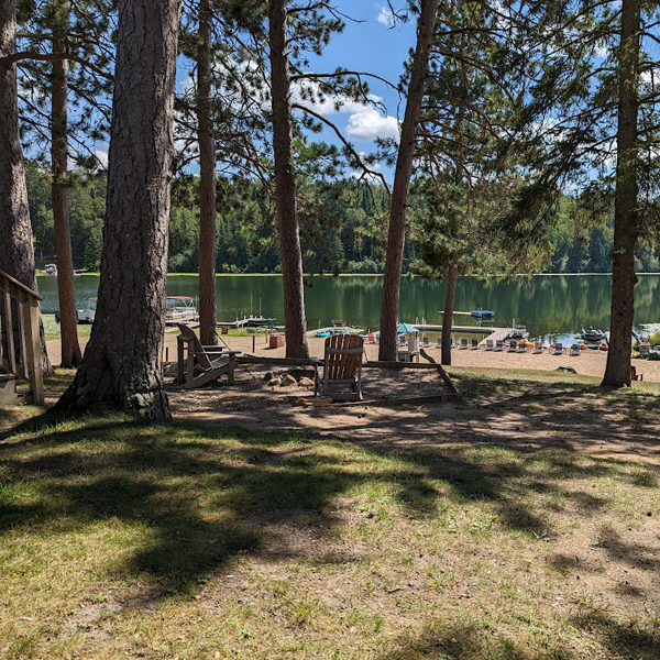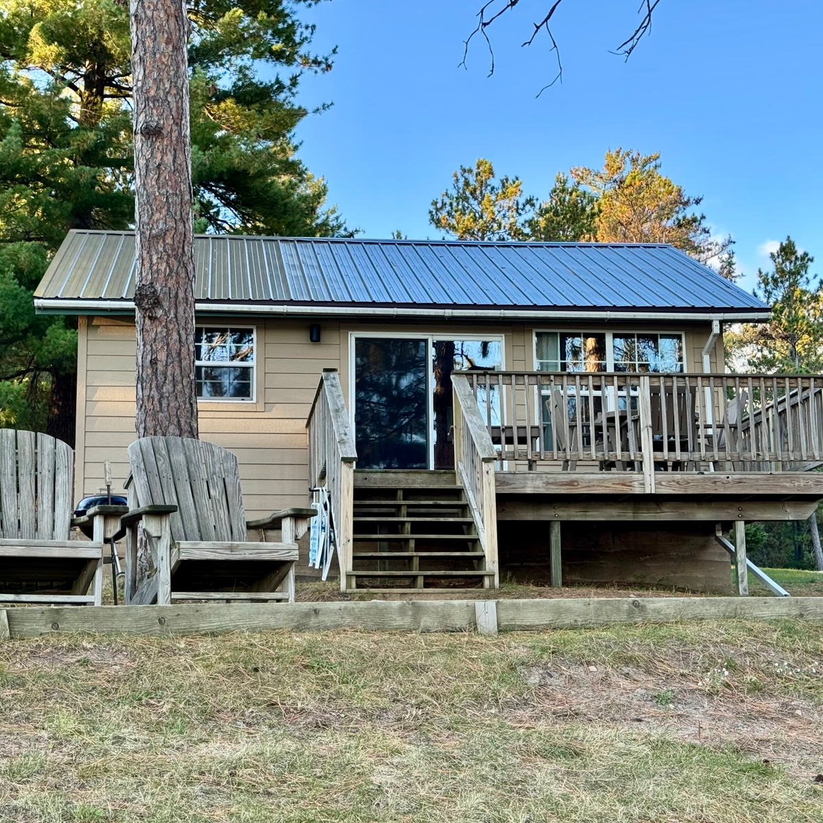 Cabin Three is nestled among the Norway Pines, with beautiful views of the lake and beach.