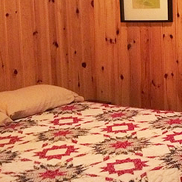 Lakefront 2 bedroom (2 queens with linens), 1 bathroom cabin with stunning views of the lake and adjacent woods. Full kitchen complete with electric appliances, microwave, coffee pot, dishes, pots, pans, and utensils. Hide-a-way bed in living area. Knotty pine interior with ceiling fans throughout. Radiant heaters provide warmth for chilly days and nights. Sliding glass door to deck. Spacious deck with table, chairs and umbrella. Windows offer excellent views of the lake and woods. Personal fire ring and charcoal grill.