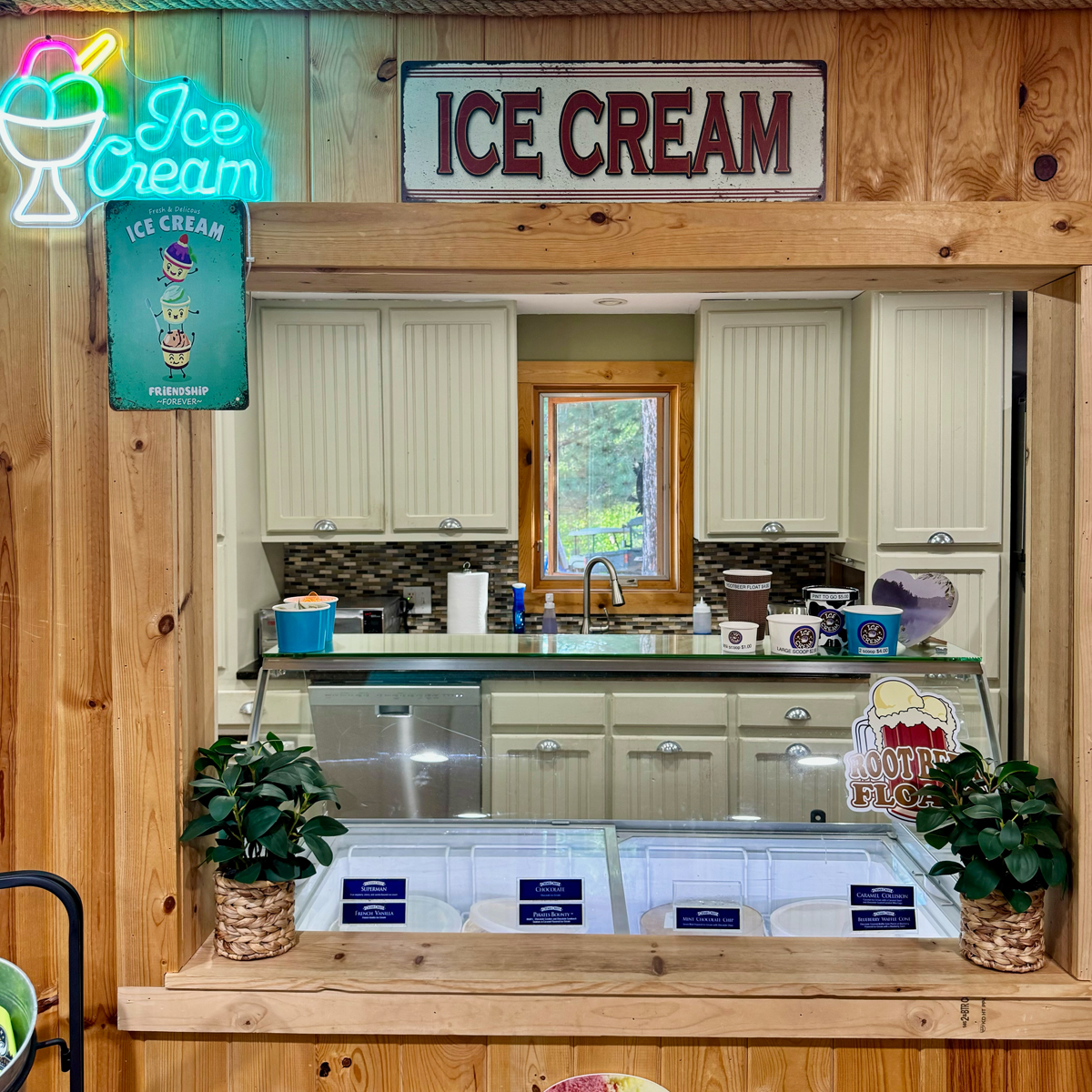Sleeping Fawn Resort and Campground has a small store with ice cream, pizza, beverages, candy, ice, resort clothing, toys, souvenirs, firewood, and other essentials.