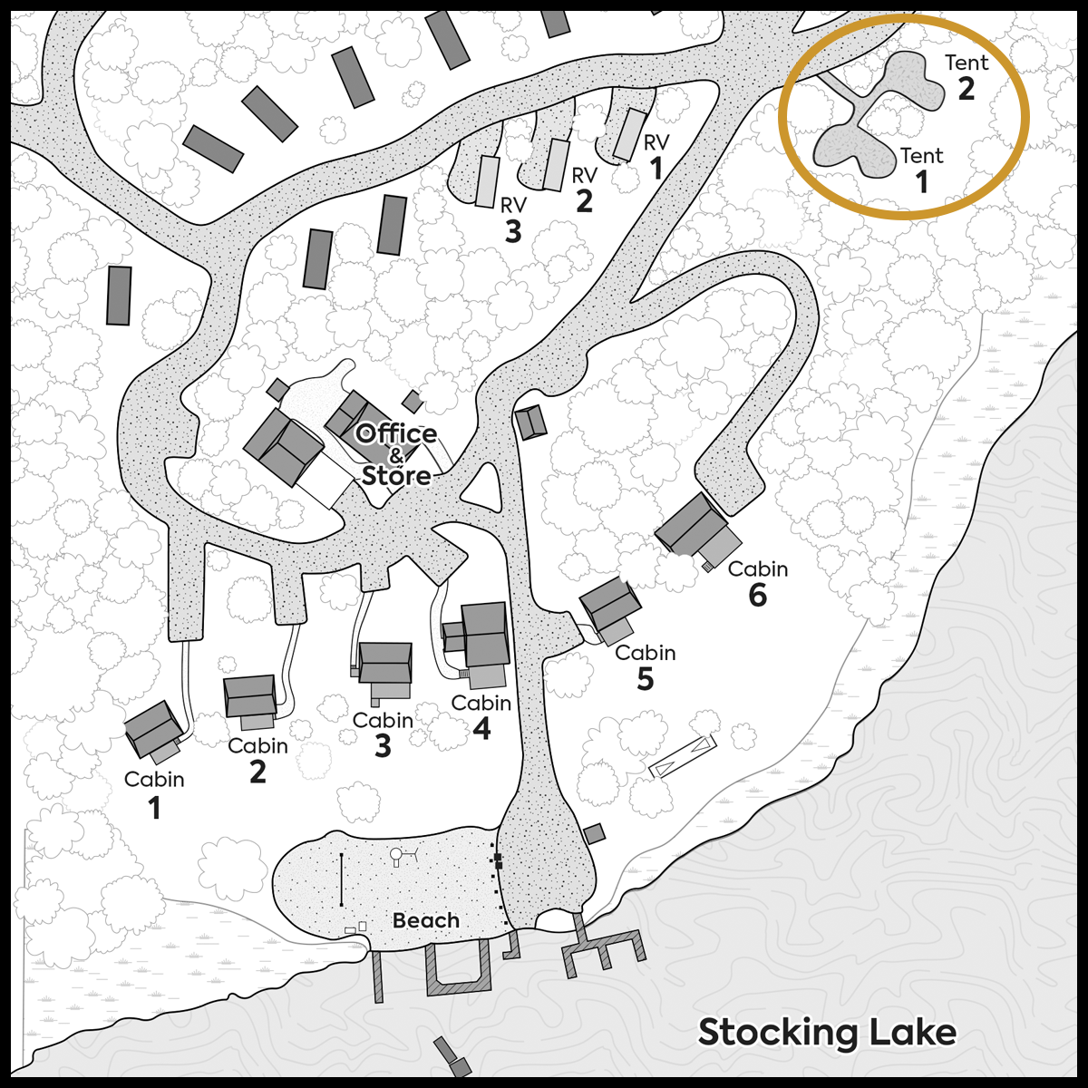 Our two lakeview primitive tent sites, spread apart for privacy, are tucked 40 feet into the woods and offer stunning views. Sites include a picnic table and personal fire ring. ᯤ Wi-Fi included!